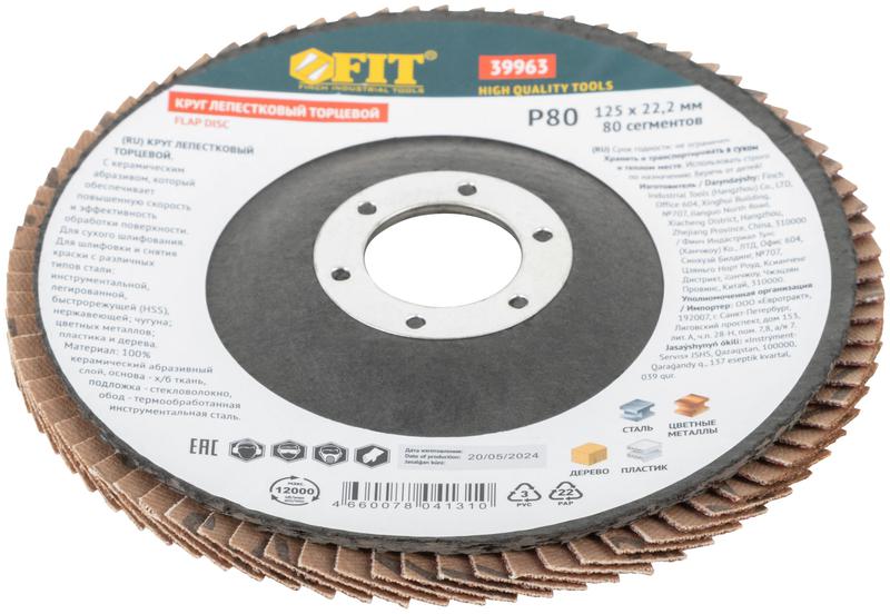 Круг лепестковый торцевой керамический 125мм Р 80 FIT 39963