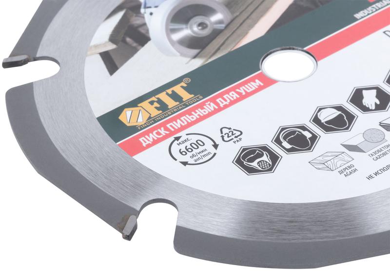 Диск пильный по дереву посадочный диаметр 22.2мм 6зуб. с карбидными вставками 230мм FIT 37638