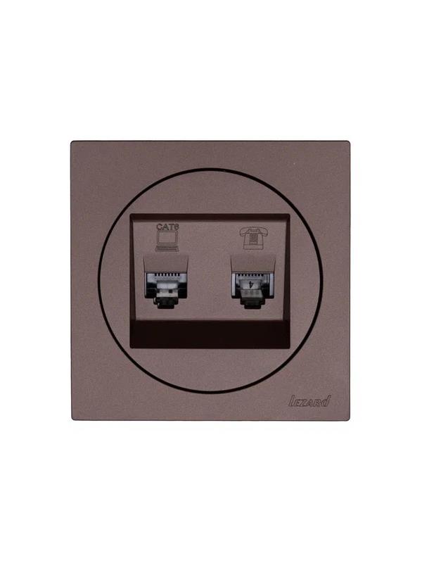 Розетка компьютерная + телефонная OSEN RJ45 кат.6 + RJ11 с модулем механизм шоколад LEZARD 743-7388-144