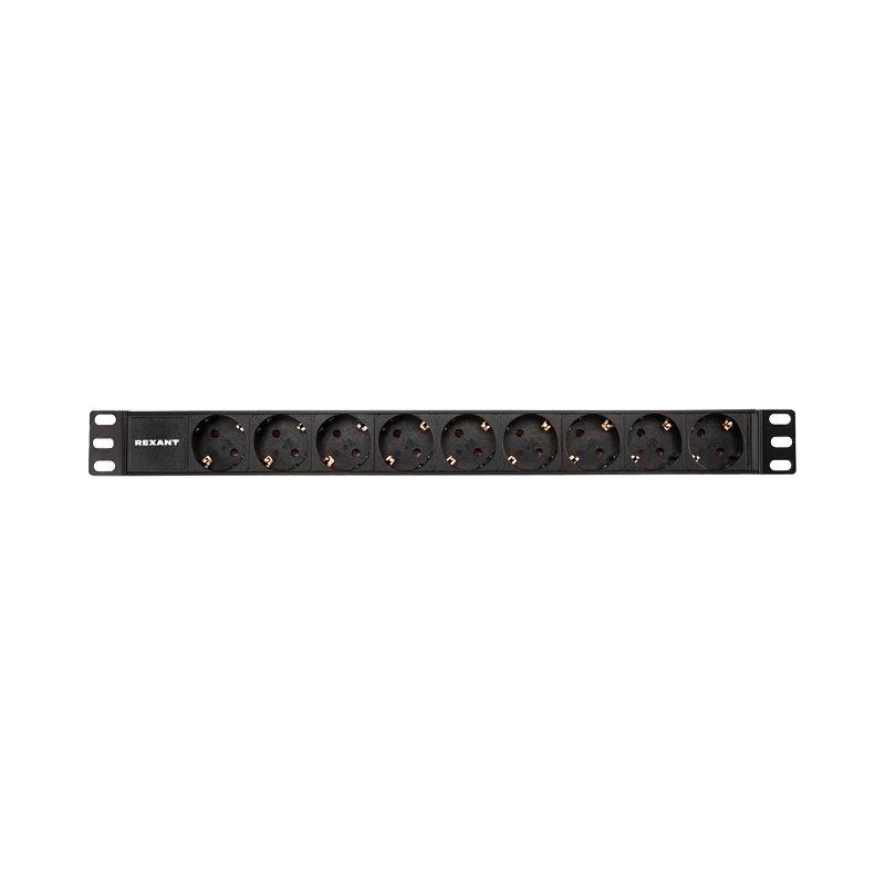Блок распределения питания для 19дюйм шкафов; горизонт.; 9 розеток СЕЕ 7/4; 16А; без выключателя; вилка СЕЕ 7/7; шнур 2м; корпус алюм. Rexant 04-0105-1