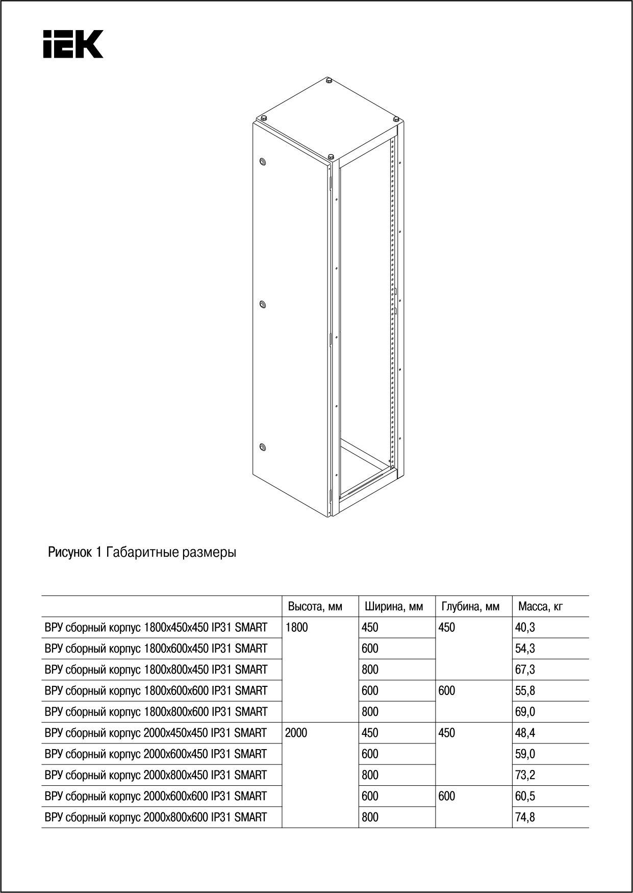 Корпус шкафа SMART, 800x2000x450мм, IP31, сталь | код. YKM50-2000-800-450 | IEK