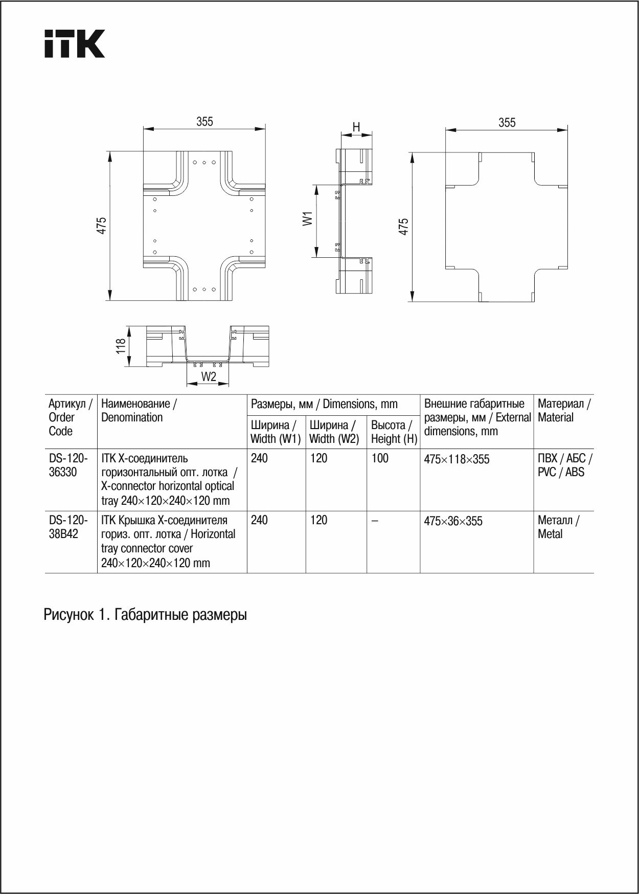 ITK Х-соединитель горизонтальный оптического лотка 240 на 120мм | код DS-120-36330 | IEK