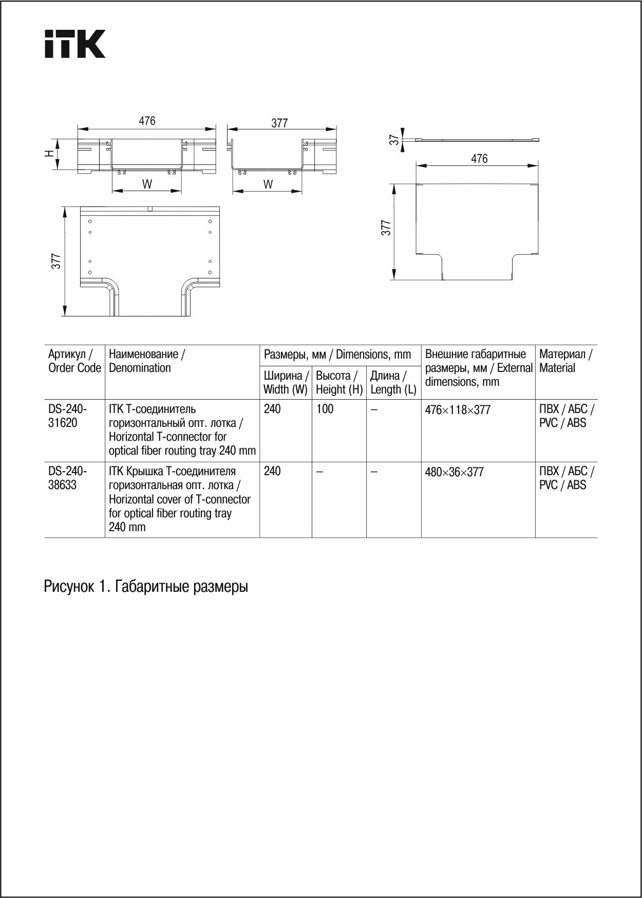 ITK T-соединитель горизонтальный оптического лотка 240мм | код DS-240-31620 | IEK