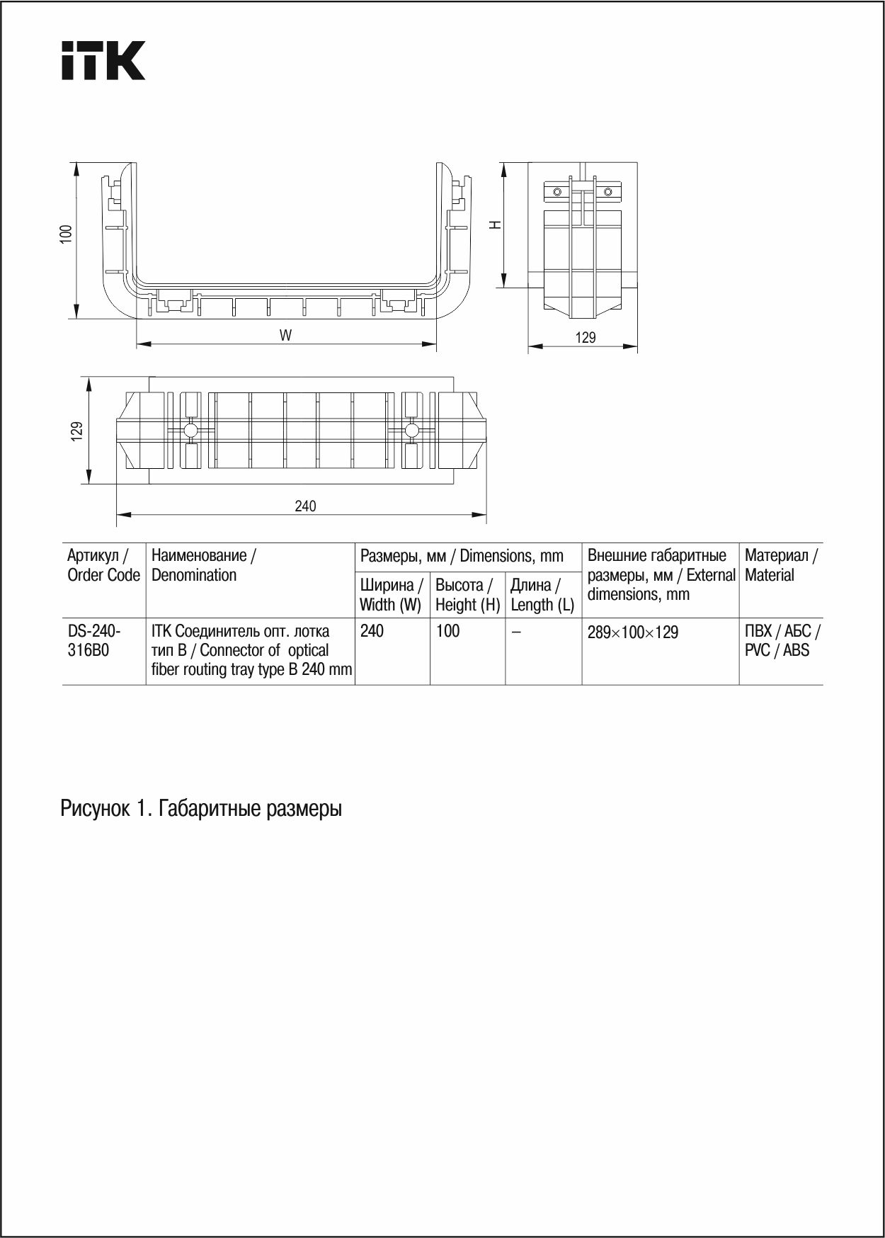 ITK Соединитель оптического лотка 240мм тип В | код DS-240-316B0 | IEK
