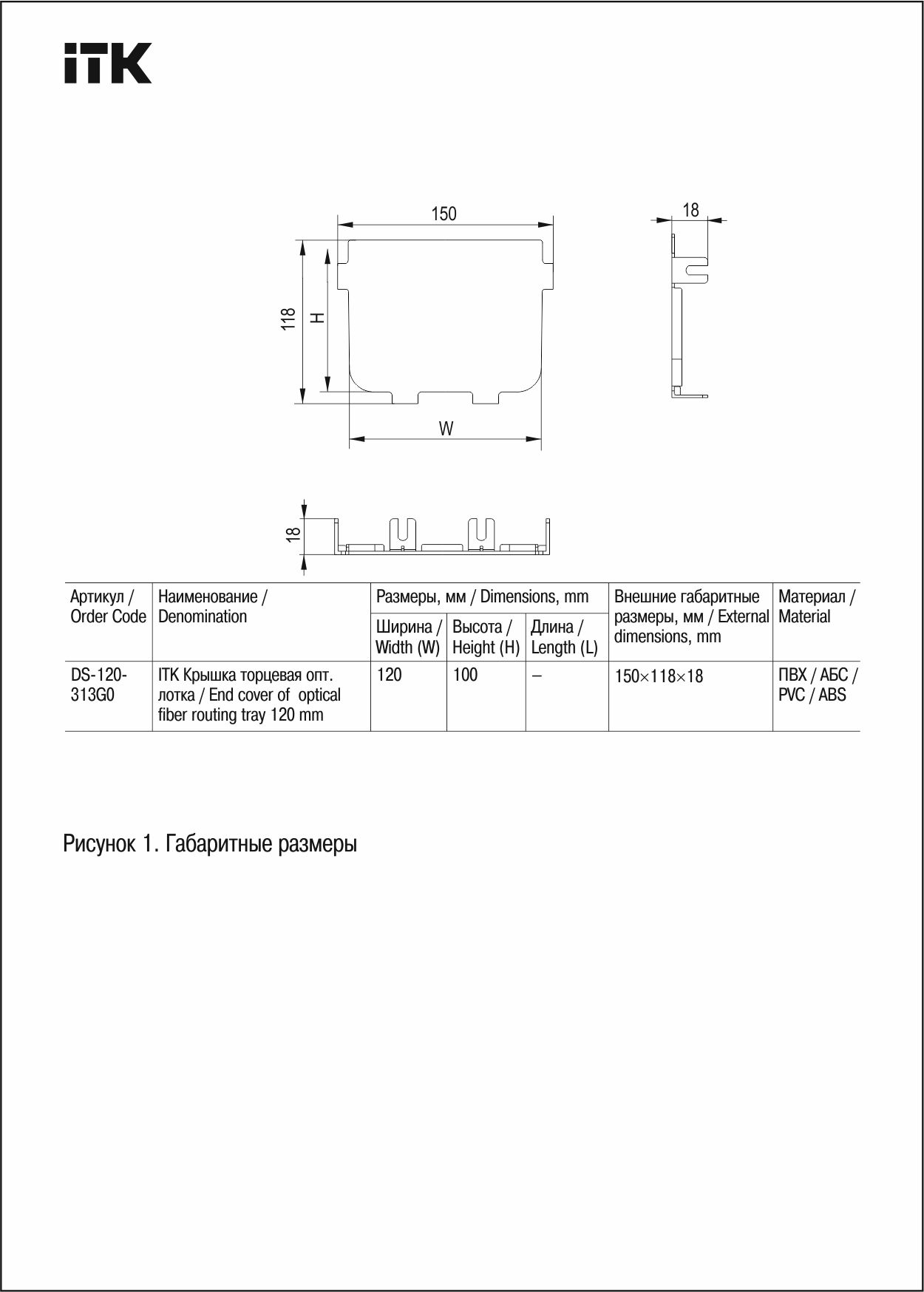 ITK Крышка торцевая оптического лотка 120мм | код DS-120-313G0 | IEK