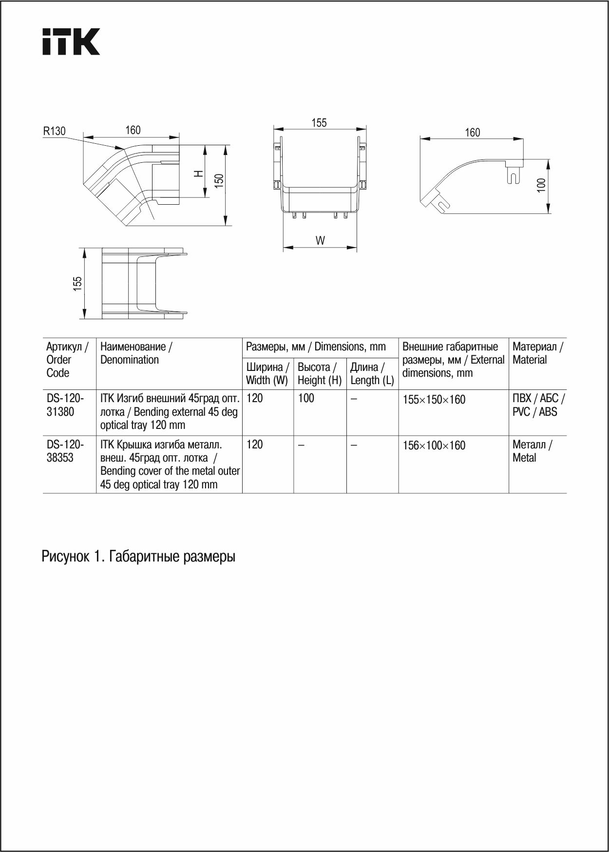 ITK Крышка поворота горизонтального 45град оптического лотка 120мм | код DS-120-38351 | IEK