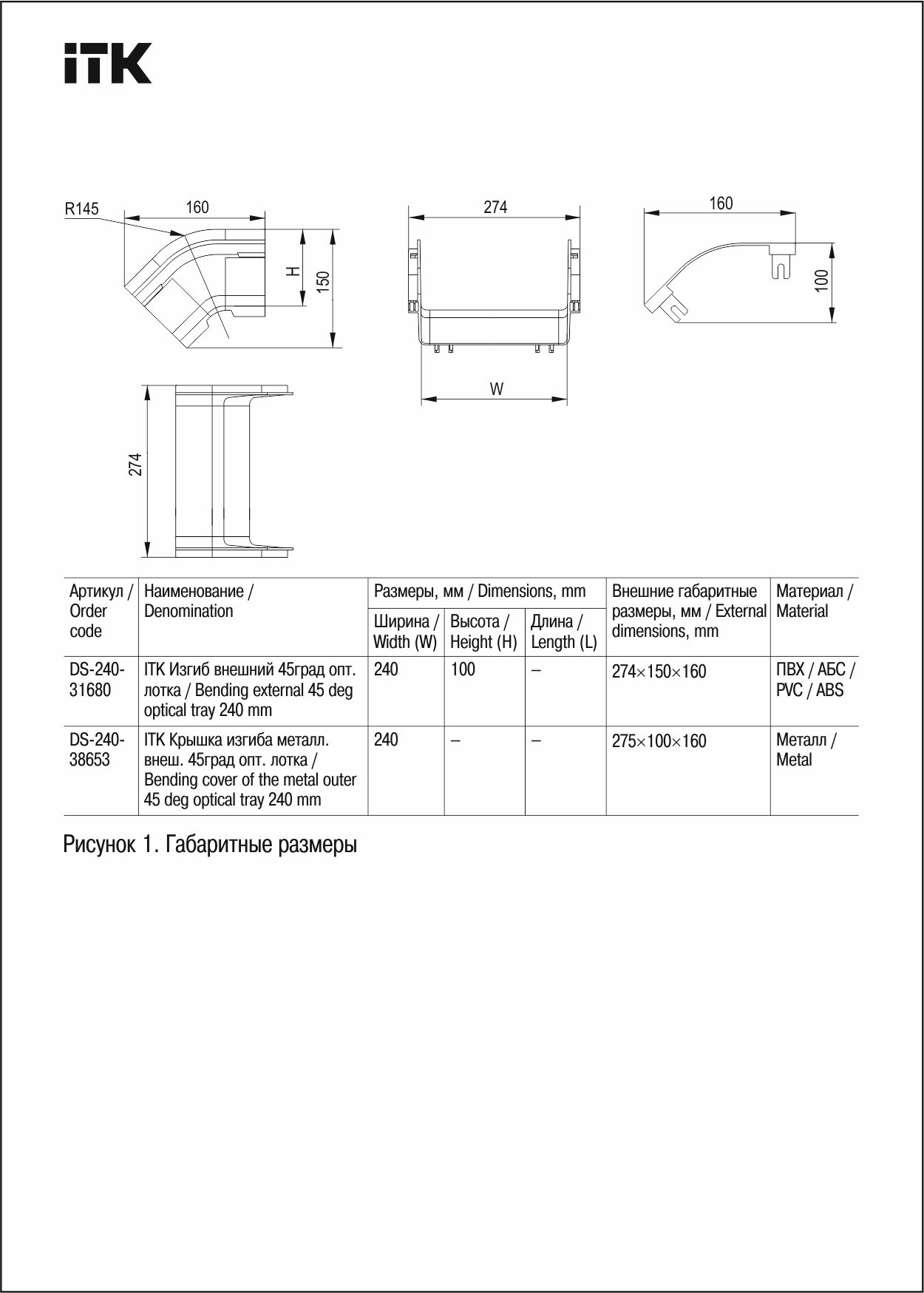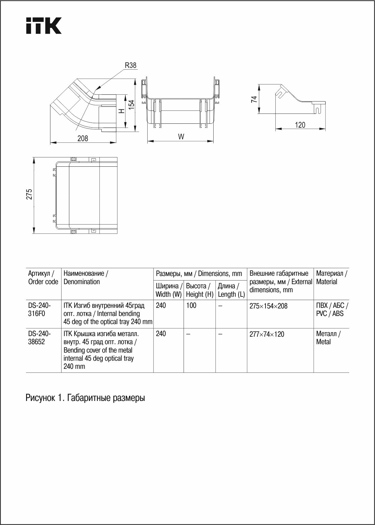 ITK Спуск кабельный внутренний 45град оптического лотка 240мм | код DS-240-31680 | IEK