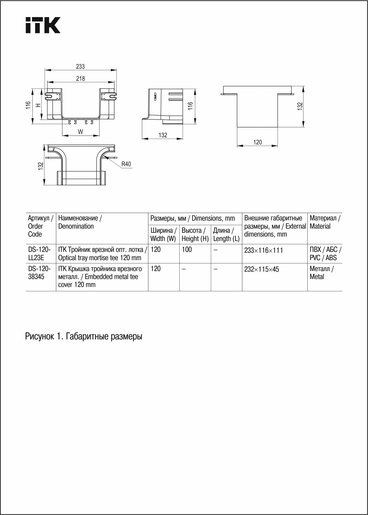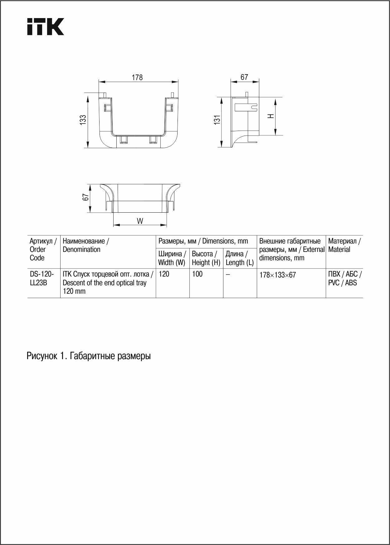 ITK Выход оптического лотка 120мм | код DS-120-LL23B | IEK