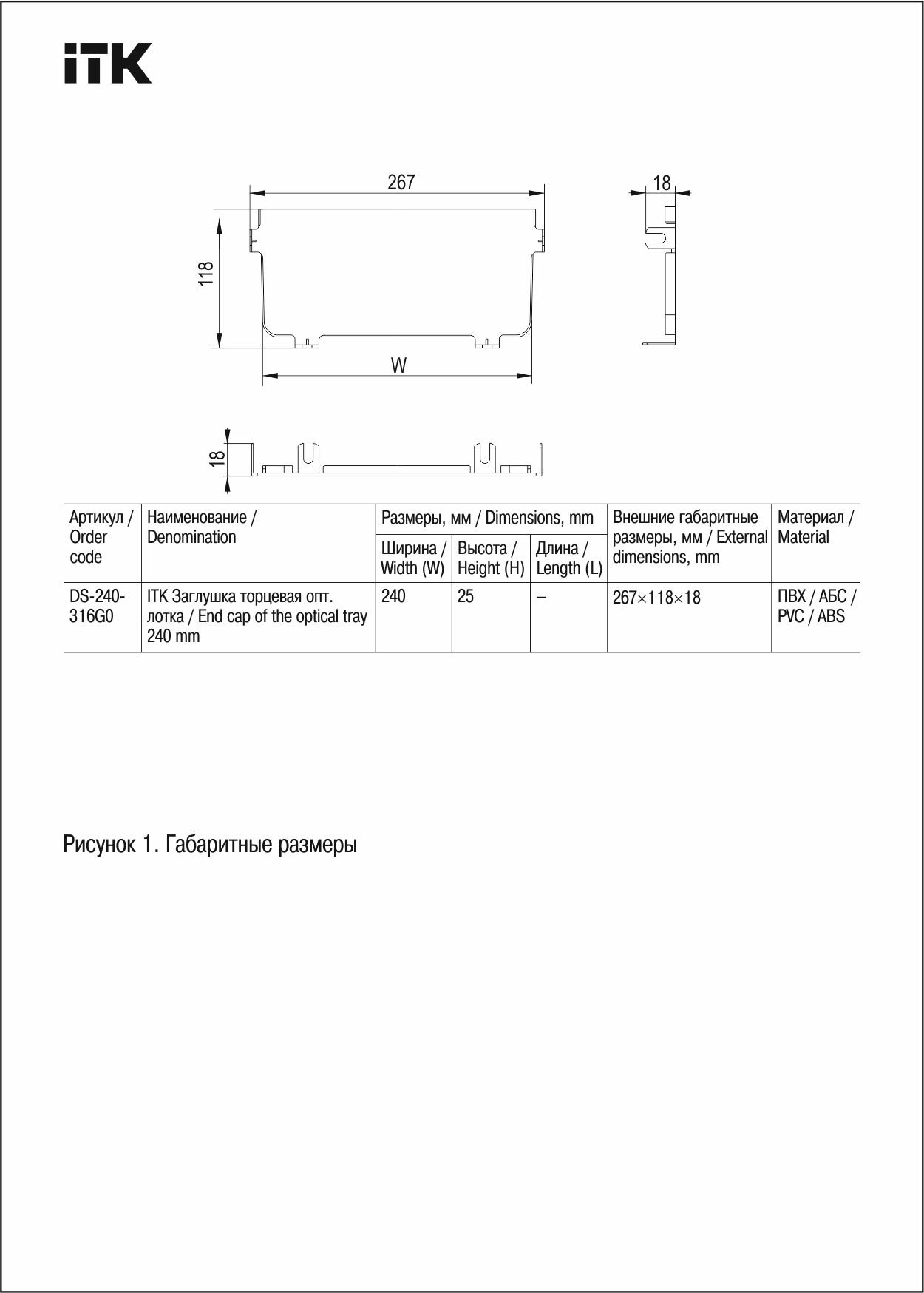 ITK Крышка торцевая оптического лотка 240мм | код DS-240-316G0 | IEK