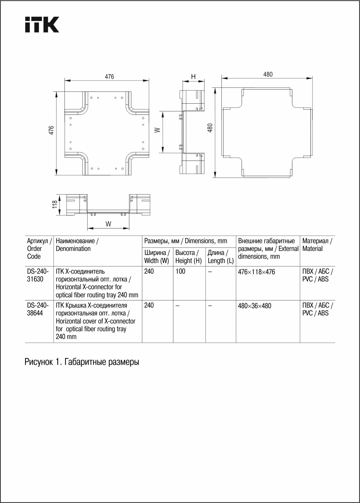 ITK Х-соединитель горизонтальный оптического лотка 240мм | код DS-240-31630 | IEK