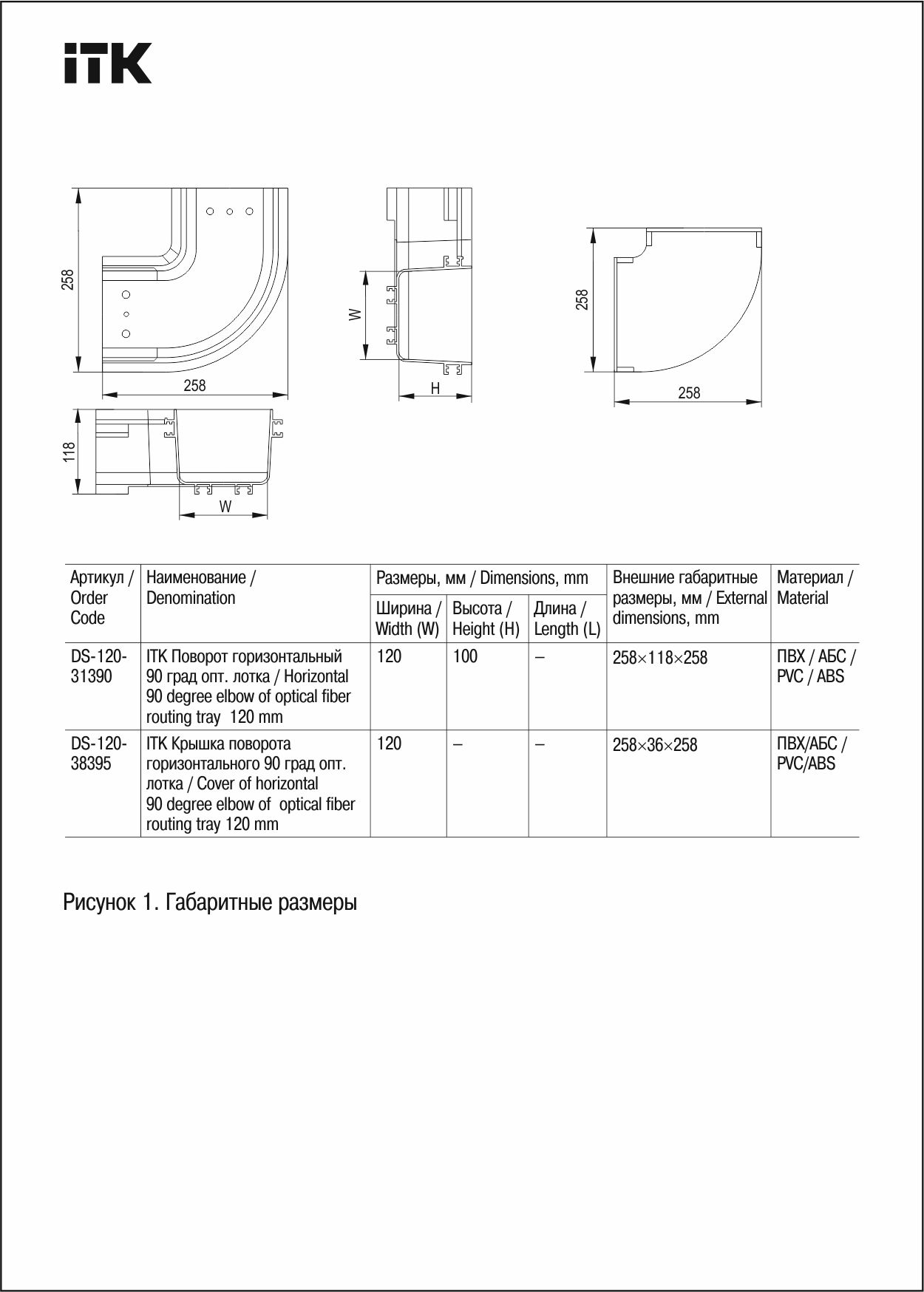 ITK Крышка поворота горизонтального 90град оптического лотка 120мм | код DS-120-38395 | IEK