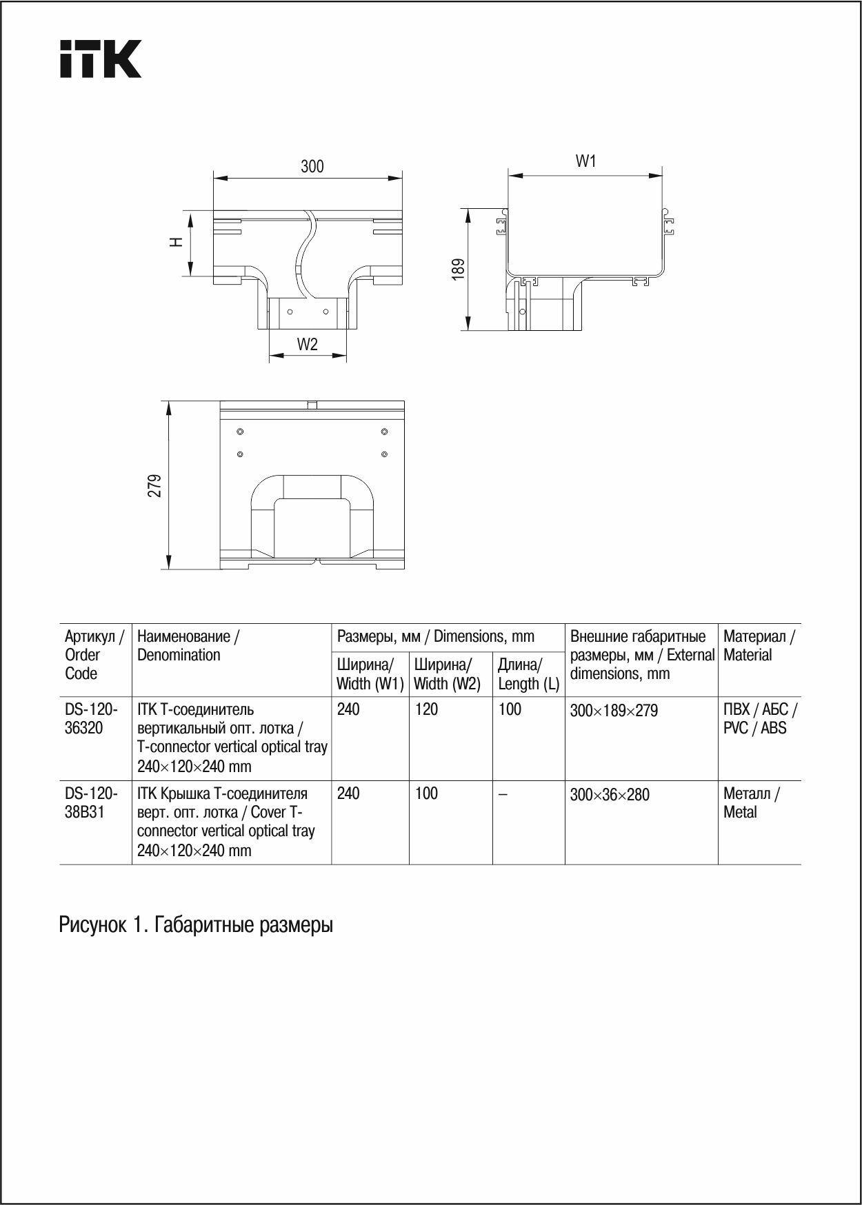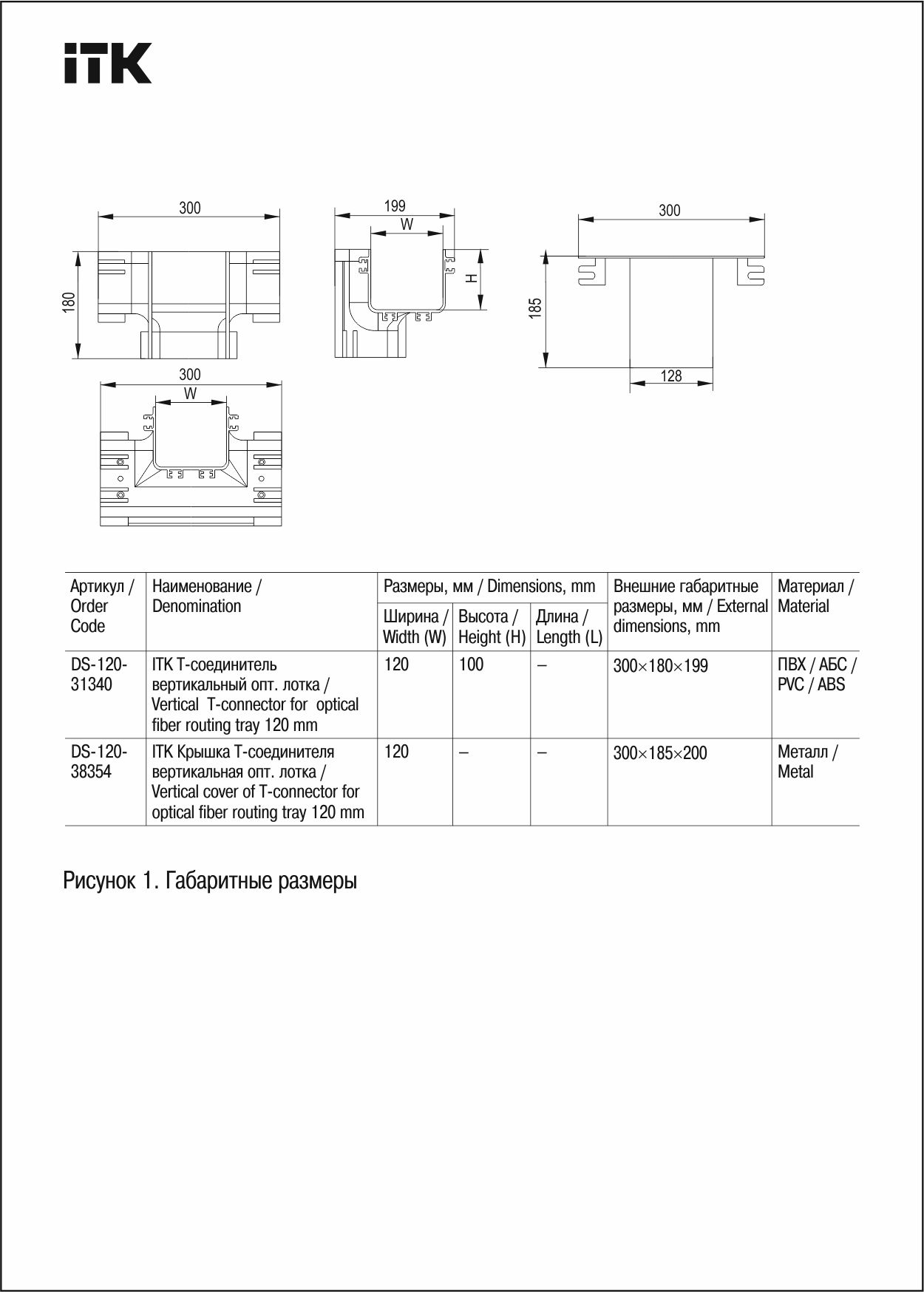 ITK T-соединитель вертикальный оптического лотка 120мм | код DS-120-31340 | IEK