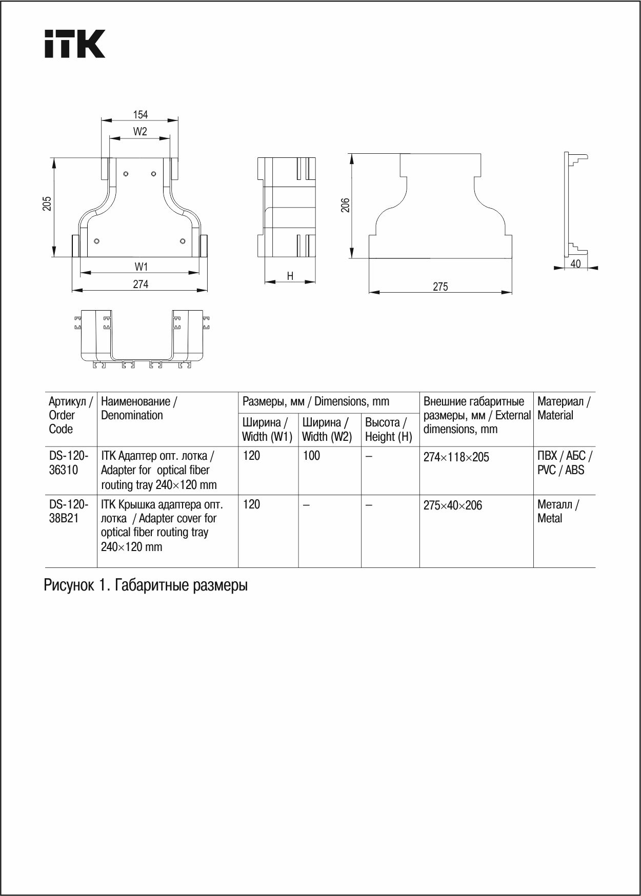 ITK Адаптер оптического лотка 240 на 120мм | код DS-120-36310 | IEK