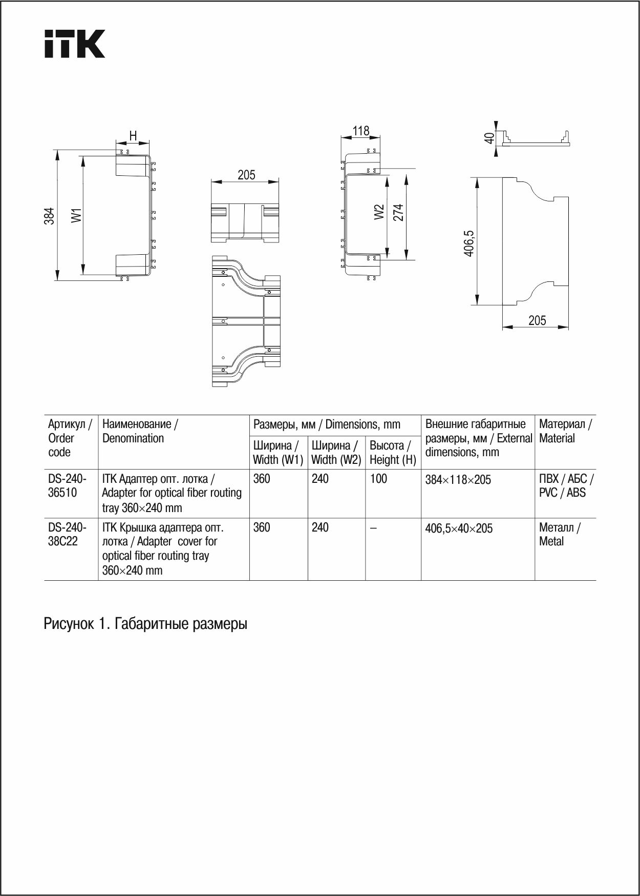 ITK Адаптер оптического лотка 360 на 240мм | код DS-240-36510 | IEK