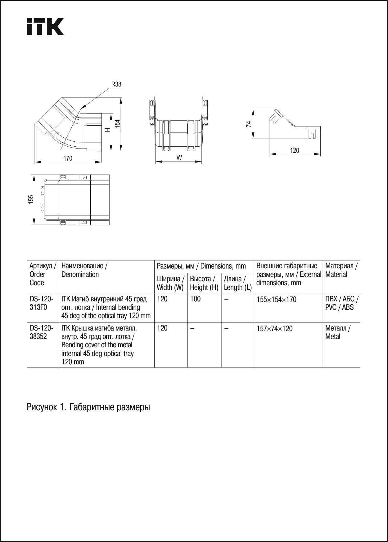 ITK Спуск кабельный внутренний 45град оптического лотка 120мм | код DS-120-31380 | IEK