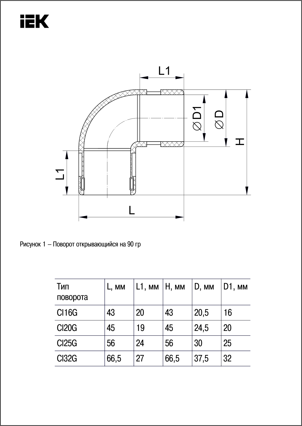 Поворот открывающийся на 90гр. CI32G | код. CTA10D-CIG32-K41-025 | IEK