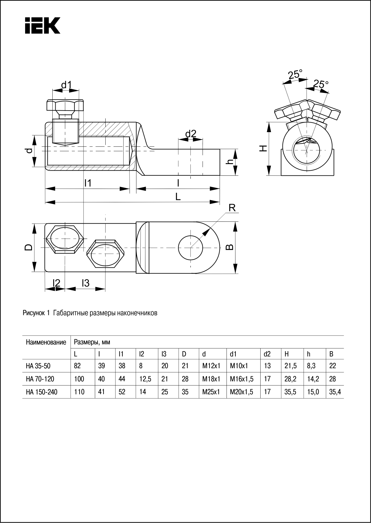 Наконечник болтовой НА 35-50 10кВ | код. UNA-50-25-50-10KV-S | IEK