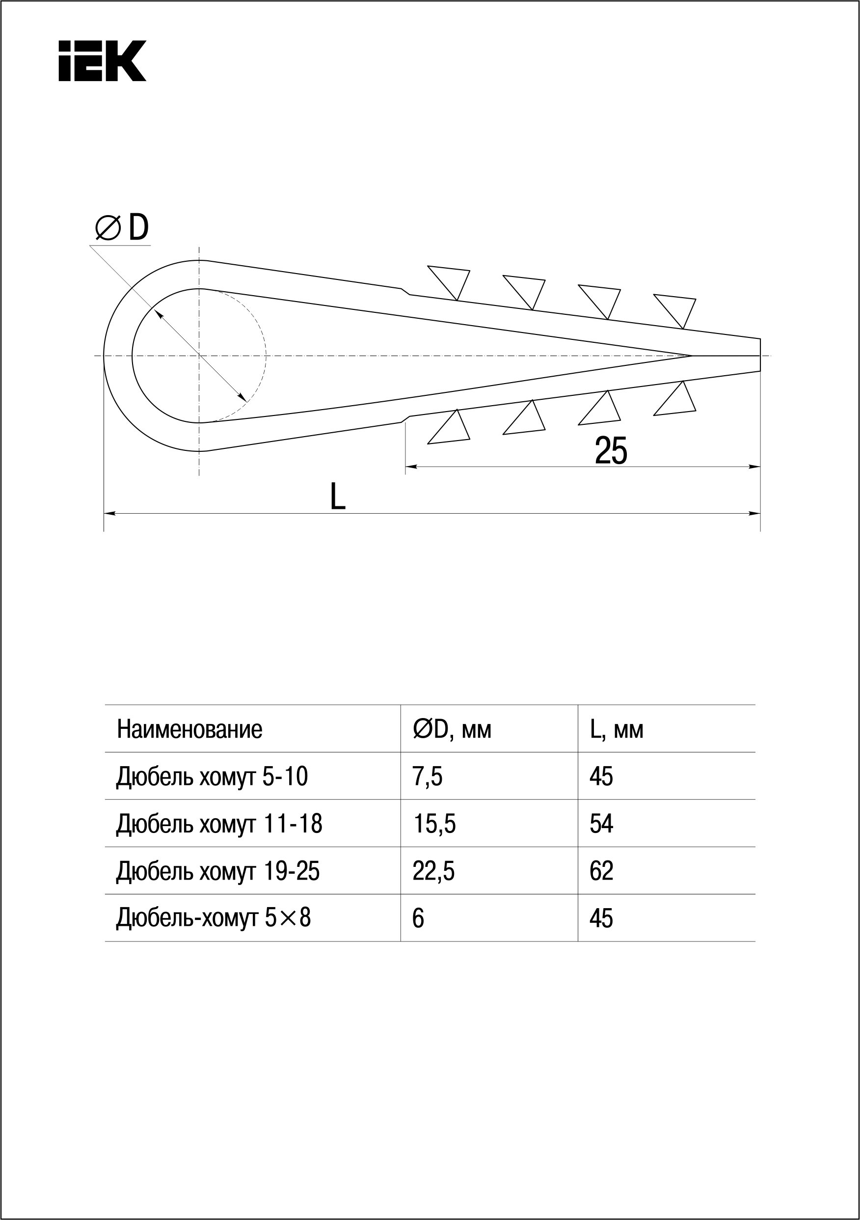 Дюбель хомут 5х8мм нейлон черный (100шт) | код. UHH36-5-8-100 | IEK