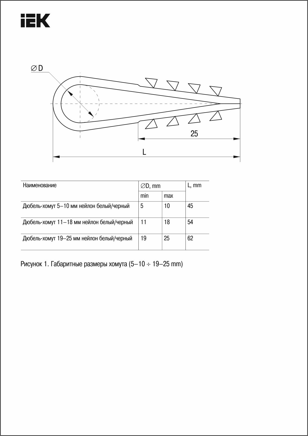 Дюбель хомут 5-10мм нейлон белый d=5мм²(100шт) | код. UHH35-5-10-100 | IEK