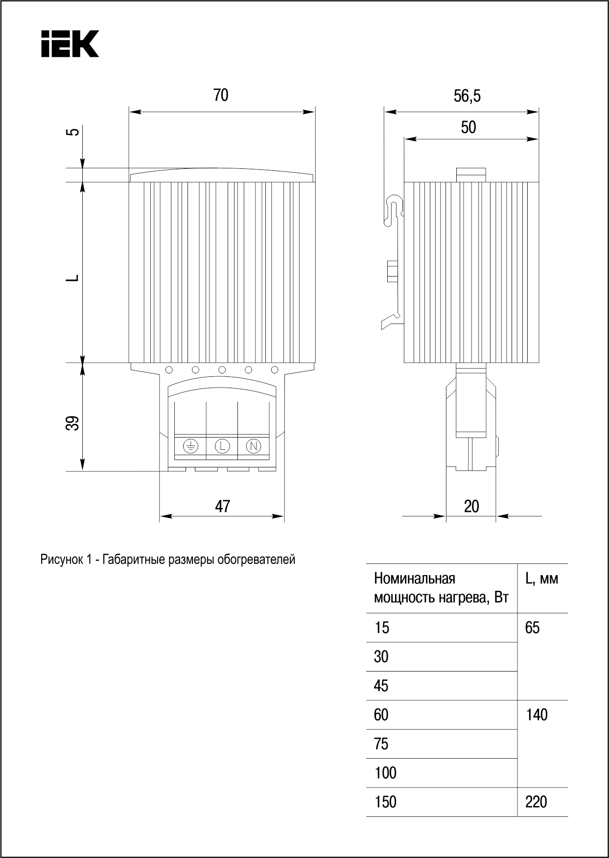 Обогреватель на DIN-рейку 15Вт IP20 | код YCE-HG-015-20 | IEK