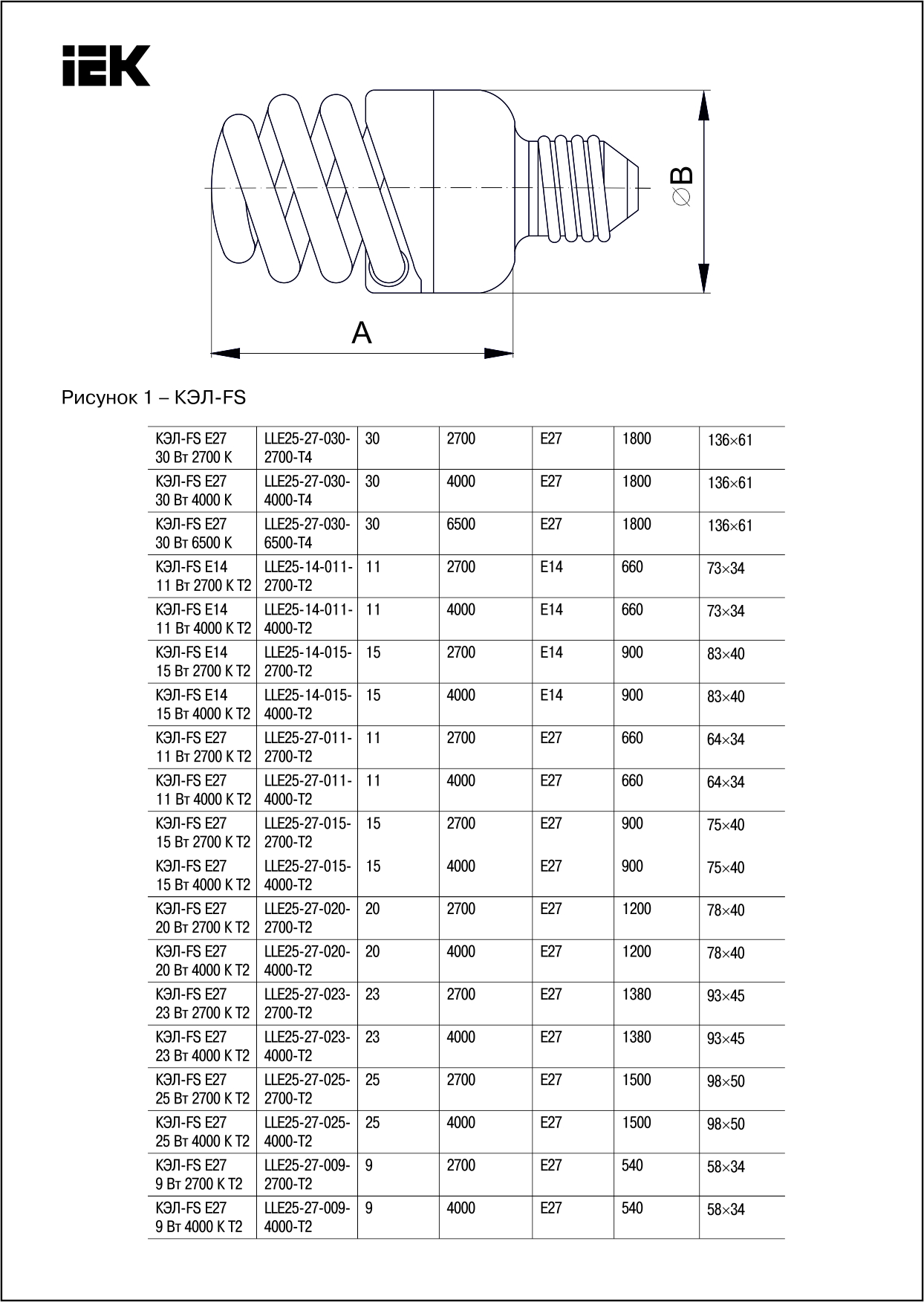 Лампа энергосберегающая спираль КЭЛ-FS Е27 23Вт 4000К Т2 | код. LLE25-27-023-4000-T2 | IEK