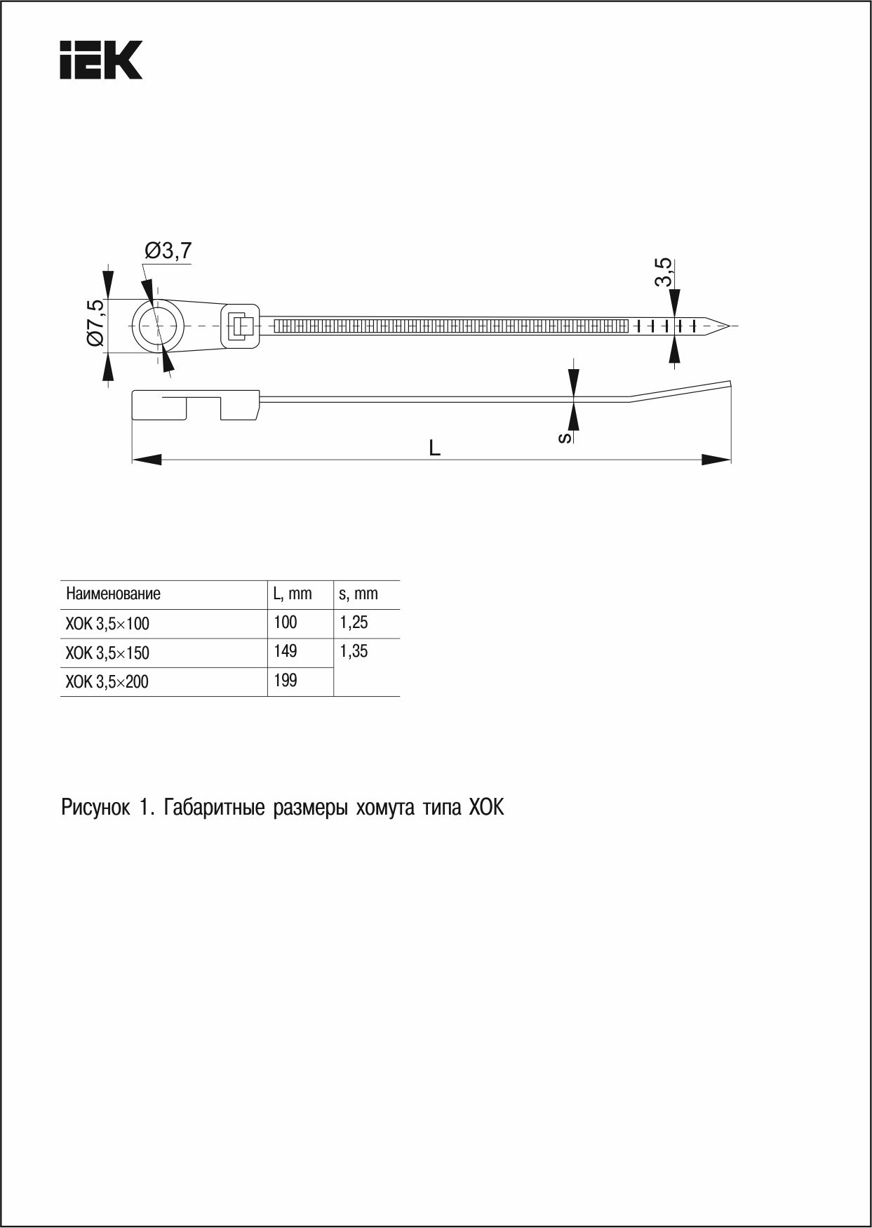Хомут с отверстием для крепления ХОК3,5х100 (100шт/упак) | код. UHH40-4-100-100 | IEK