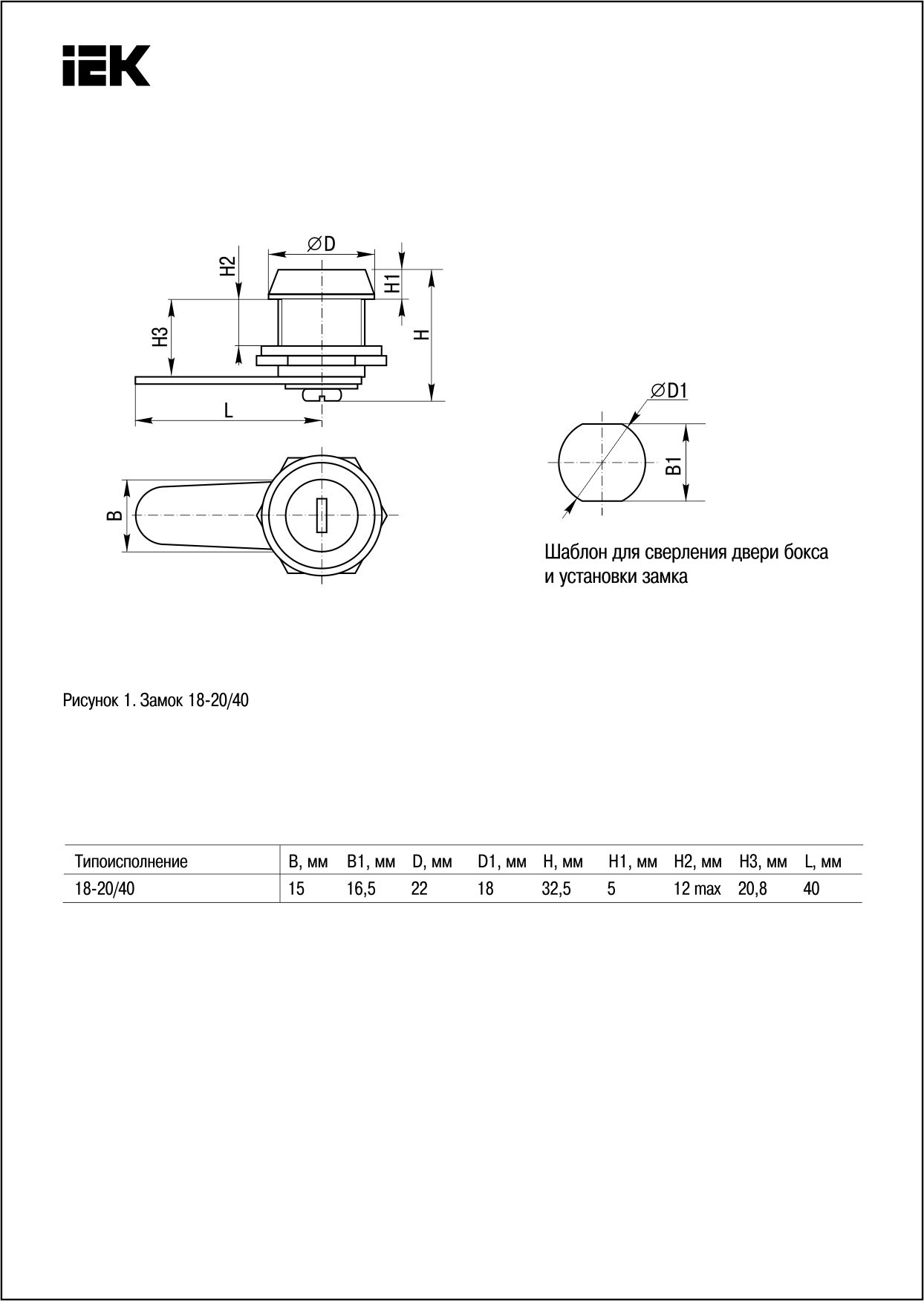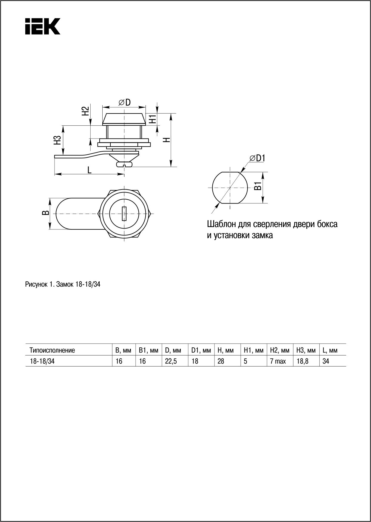 Замок 18-18/34 | код. YZK10-18-18-34 | IEK