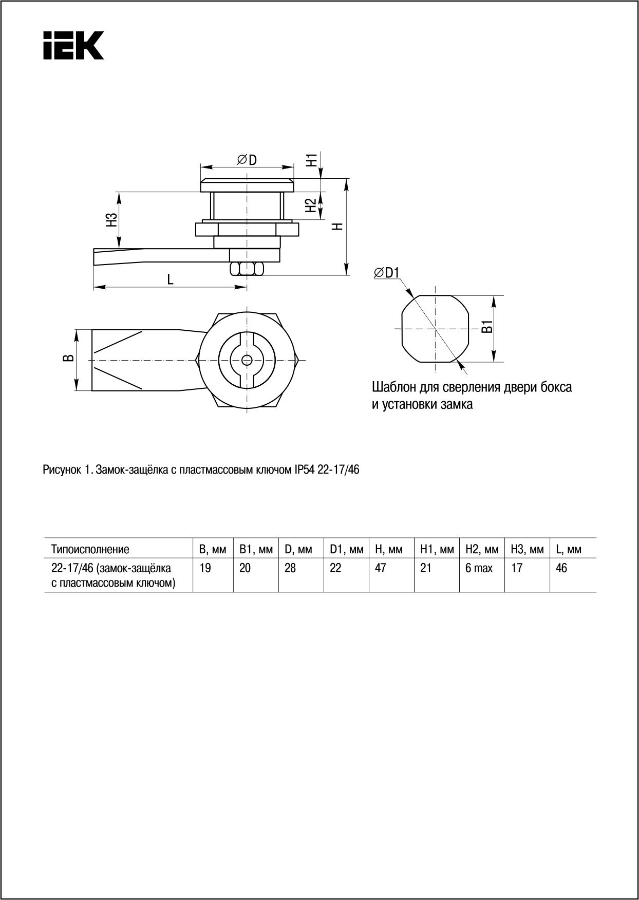 Замок-защелка для металлического бокса с пластмассовым ключом (22-17/46) | код. YZK20-00 | IEK