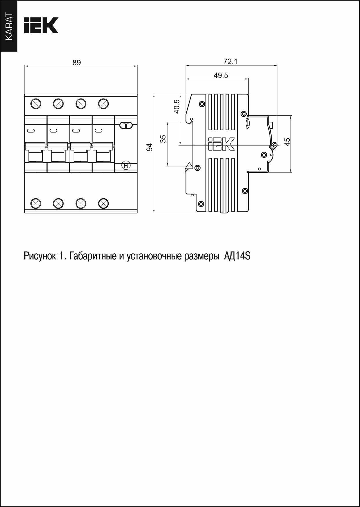 Выключатель автоматический дифференциальный АД14S 4п 63А C 100мА тип AC (5 мод) | код. MAD13-4-063-C-100 | IEK