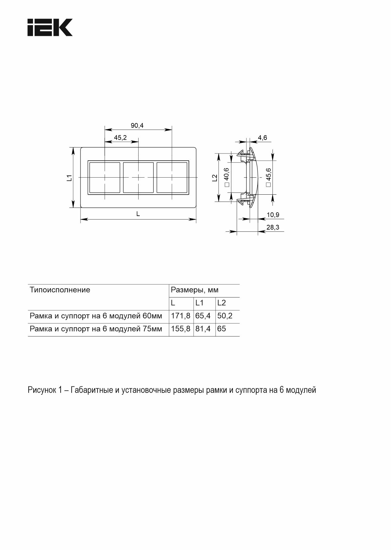Рамка и суппорт для кабель-канала ПРАЙМЕР на 6 модулей 60мм белые | код CKK-40D-RSU6-060-K01 | IEK