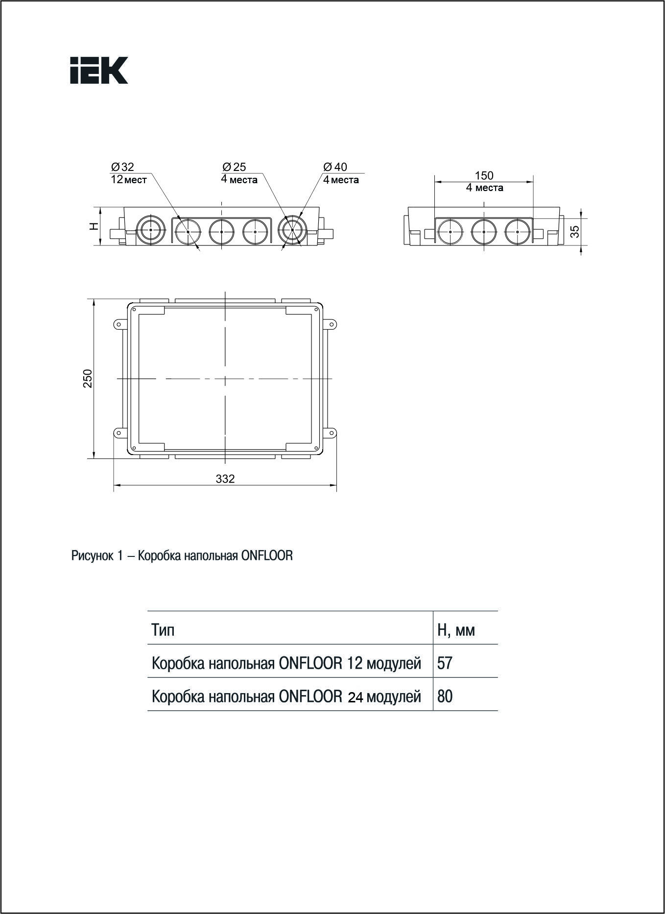 PRIMER Коробка напольная под лючок ONFLOOR 12 | код KNU-12-PA-9011 | IEK