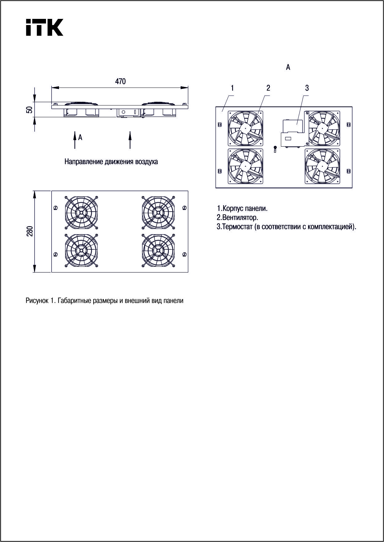 ITK Потолочная вентиляторная панель с термостатом 4 вентилятора черная | код FM05-42 | IEK