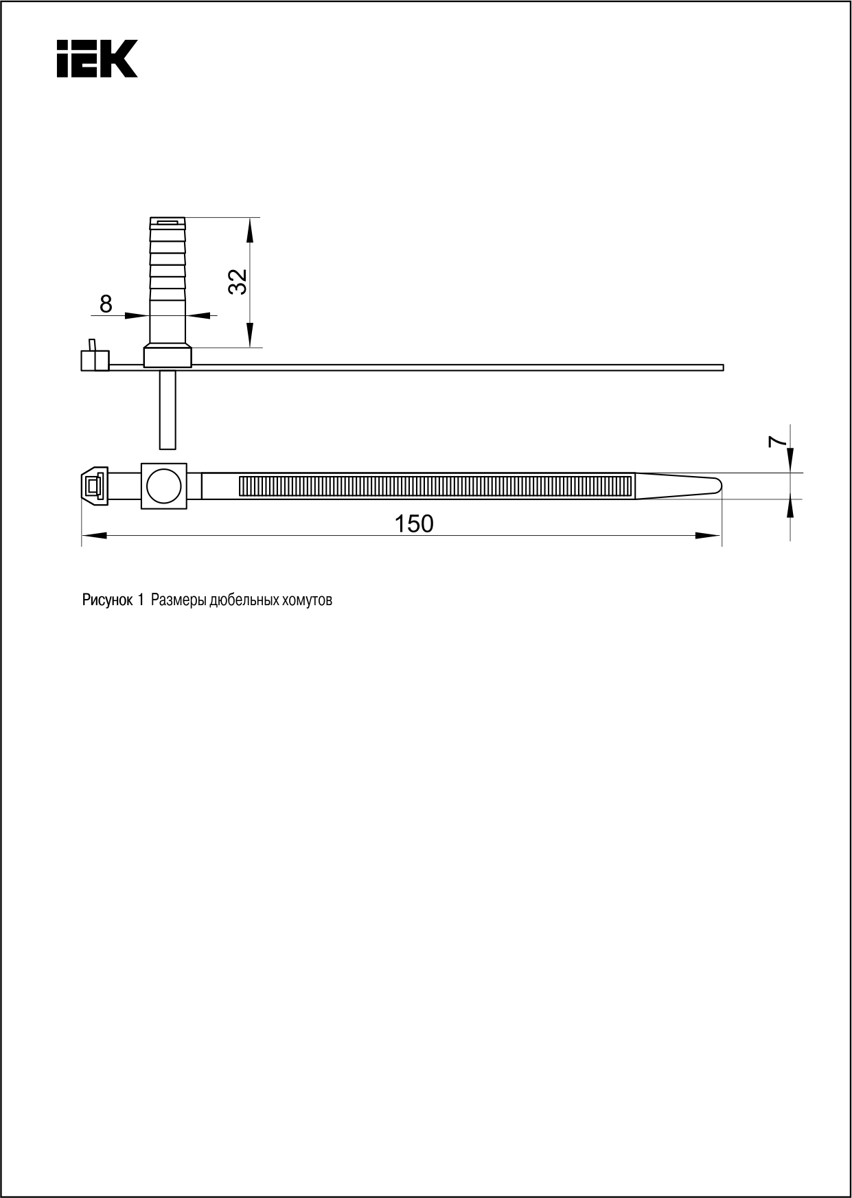 Хомут дюбельный ХД 7х150 черный (50шт/упак) | код. UHH80-7-150-50-K02-F | IEK