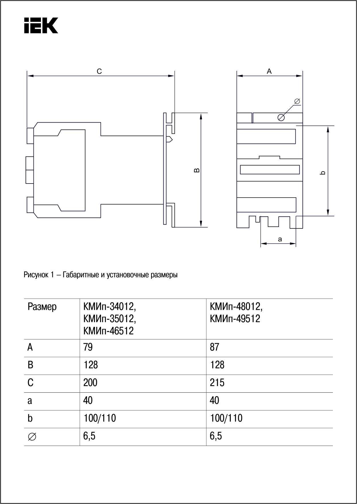 Контактор КМИп-46512 65А 230В/АС3 1НО;1НЗ | код KMD41-065-230-11 | IEK