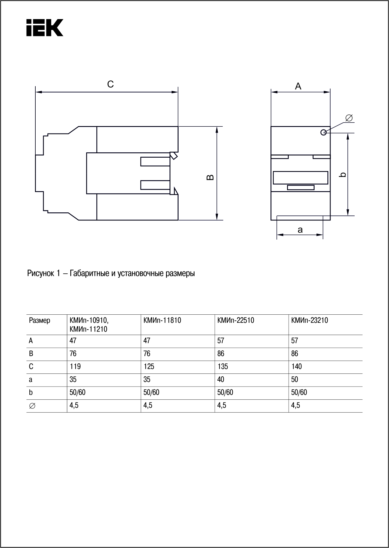 Контактор КМИп-48012 80А 230В/АС3 1НО;1НЗ | код KMD41-080-230-11 | IEK