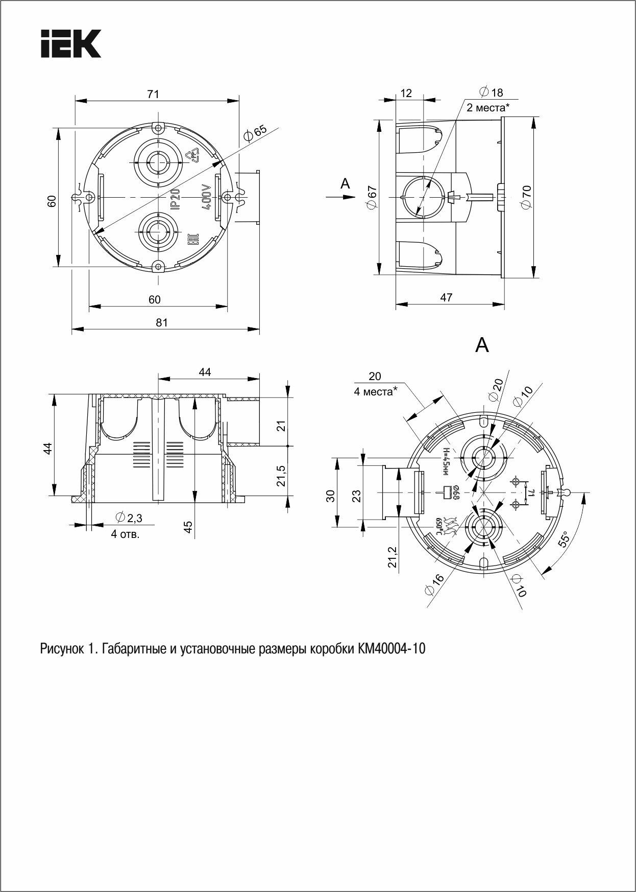 Коробка расп. КМ для о/п D=65х40мм IP54 4 вв. сосна IEK | код UKO21-065-040-000-K34-54 | IEK