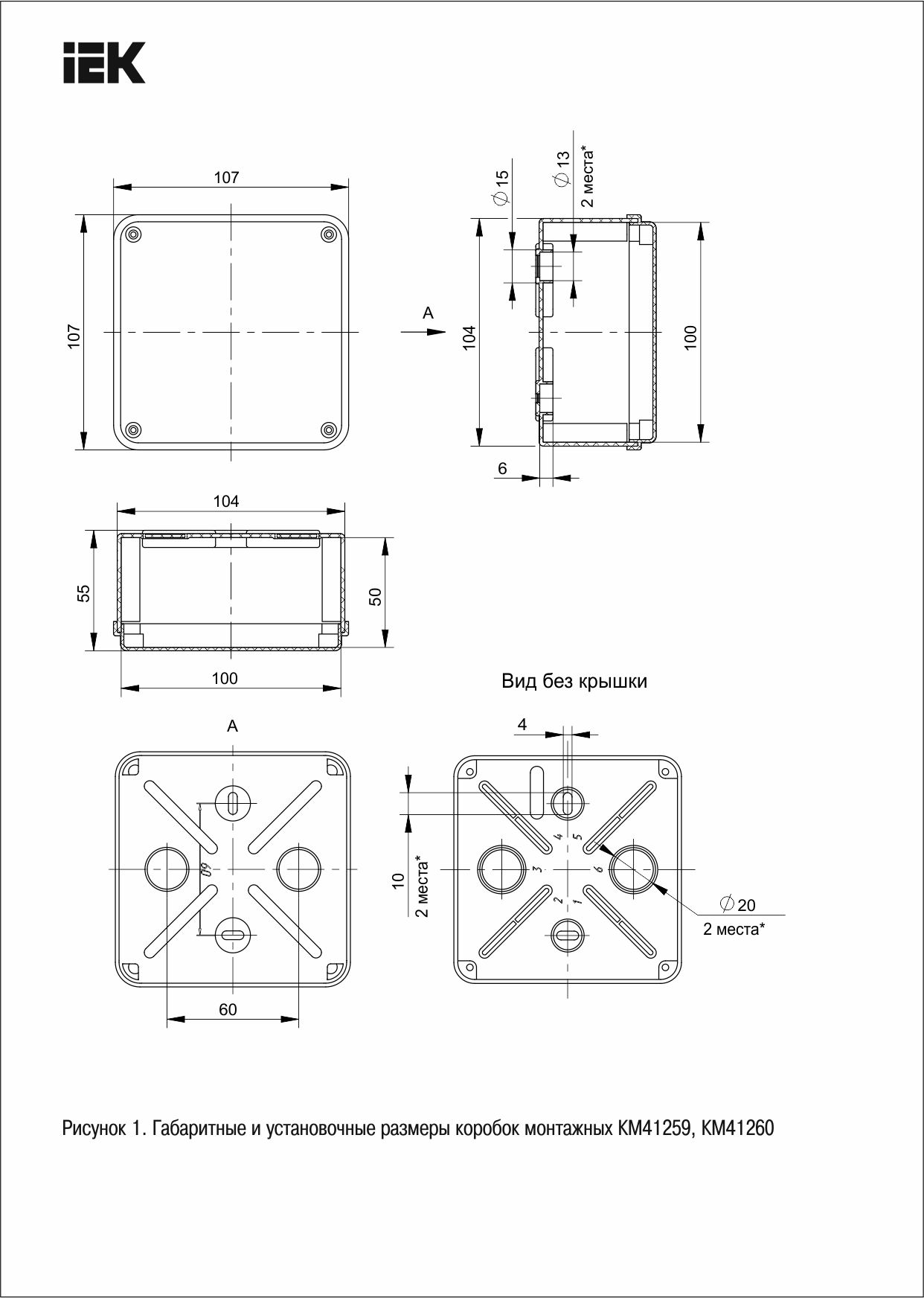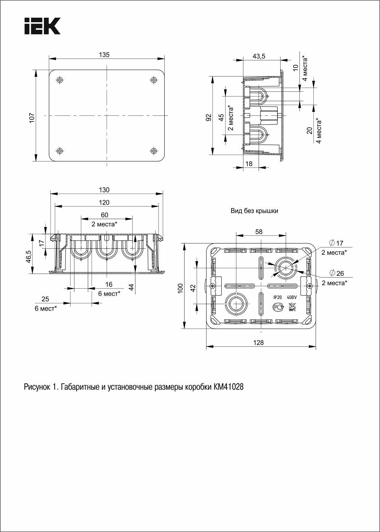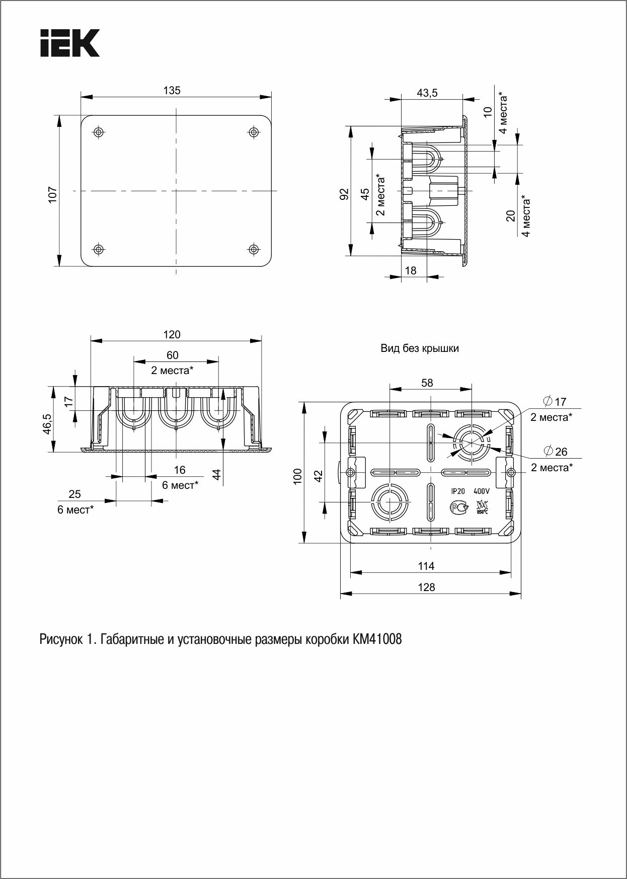 Коробка расп. КМ41008 тв. ст. 120х92х45мм IEK | код UKT11-120-092-045-A-N | IEK