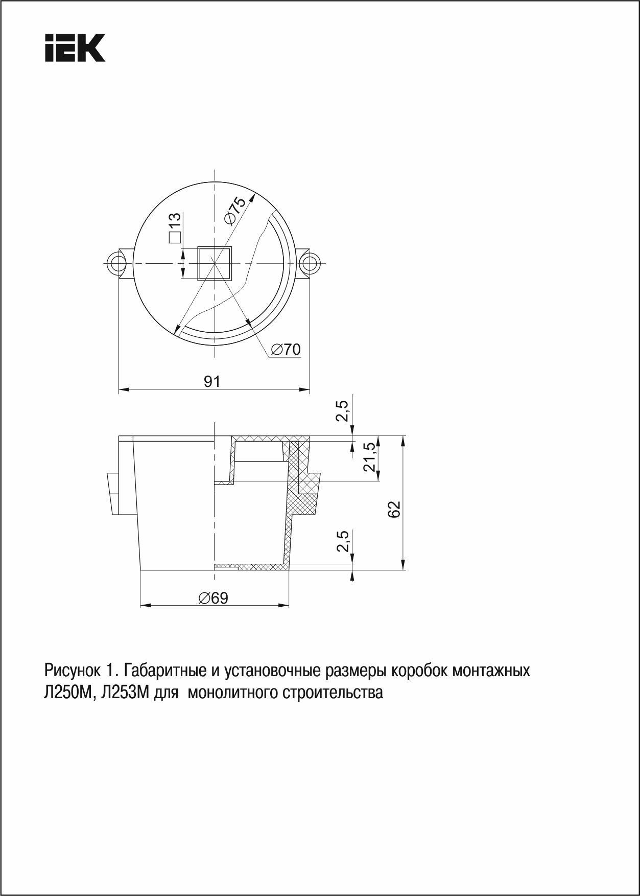 Коробка потолоточная Л253М У3 D=75х62мм монолит. стр. IEK | код UKM10-075-062-000-O-K02 | IEK