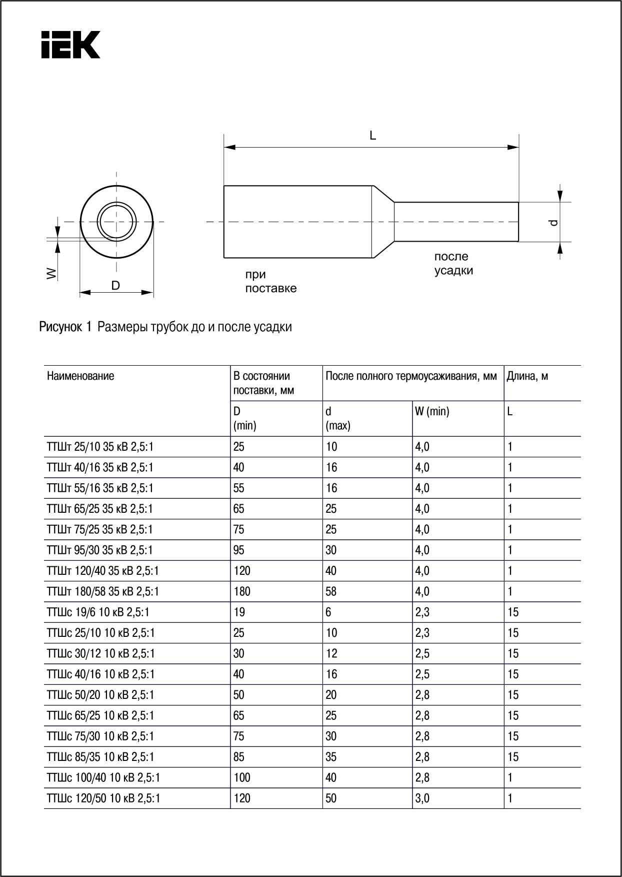 Термоусадочная трубка ТТУ 3/1,5 белая 1 м | код. UDRS-D3-1-K01 | IEK