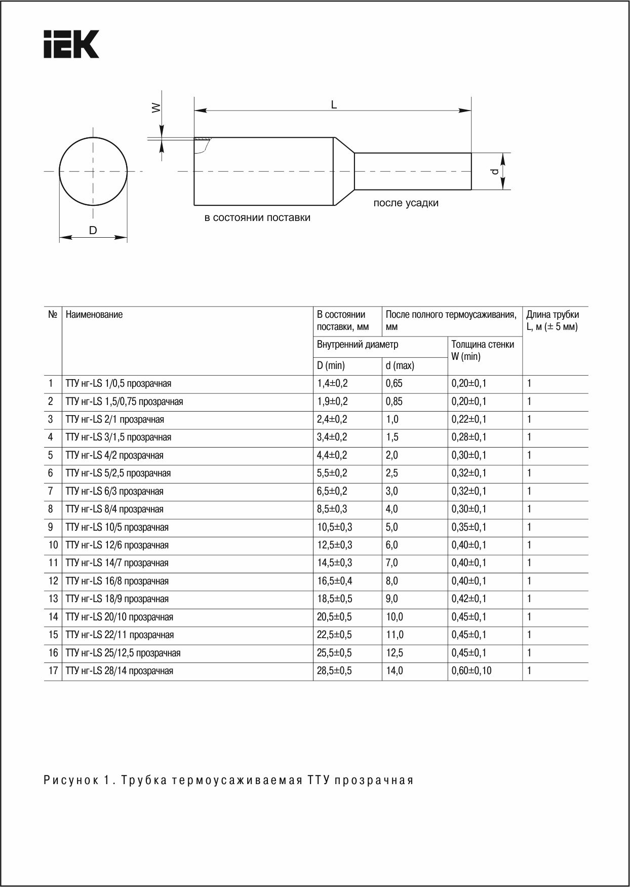Термоусадочная трубка ТТУ 1/0,5 прозрачная 1 м | код. UDRS-D1-1-K00 | IEK