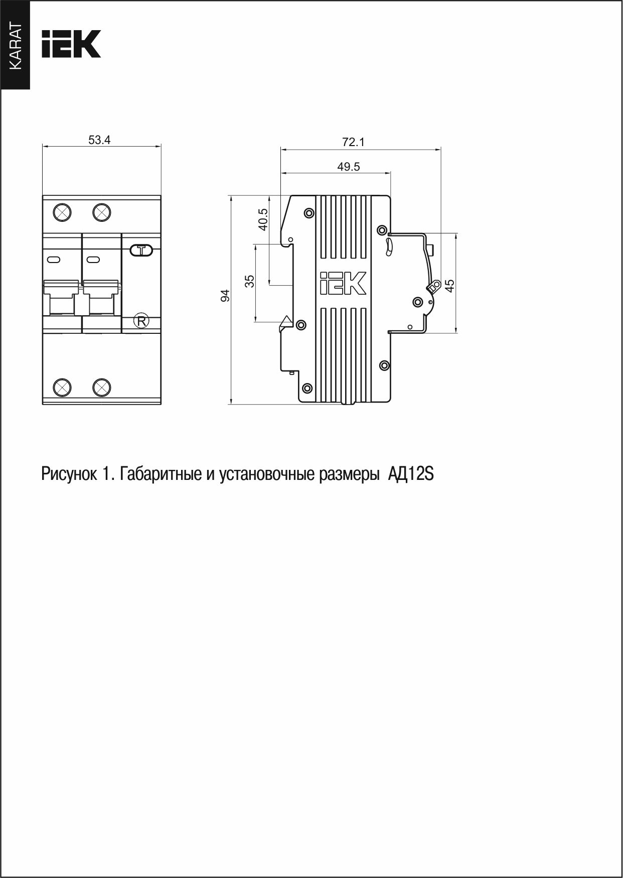 Выключатель автоматический дифференциальный АД12S 2п 50А C 100мА тип AC (3 мод) | код. MAD13-2-050-C-100 | IEK