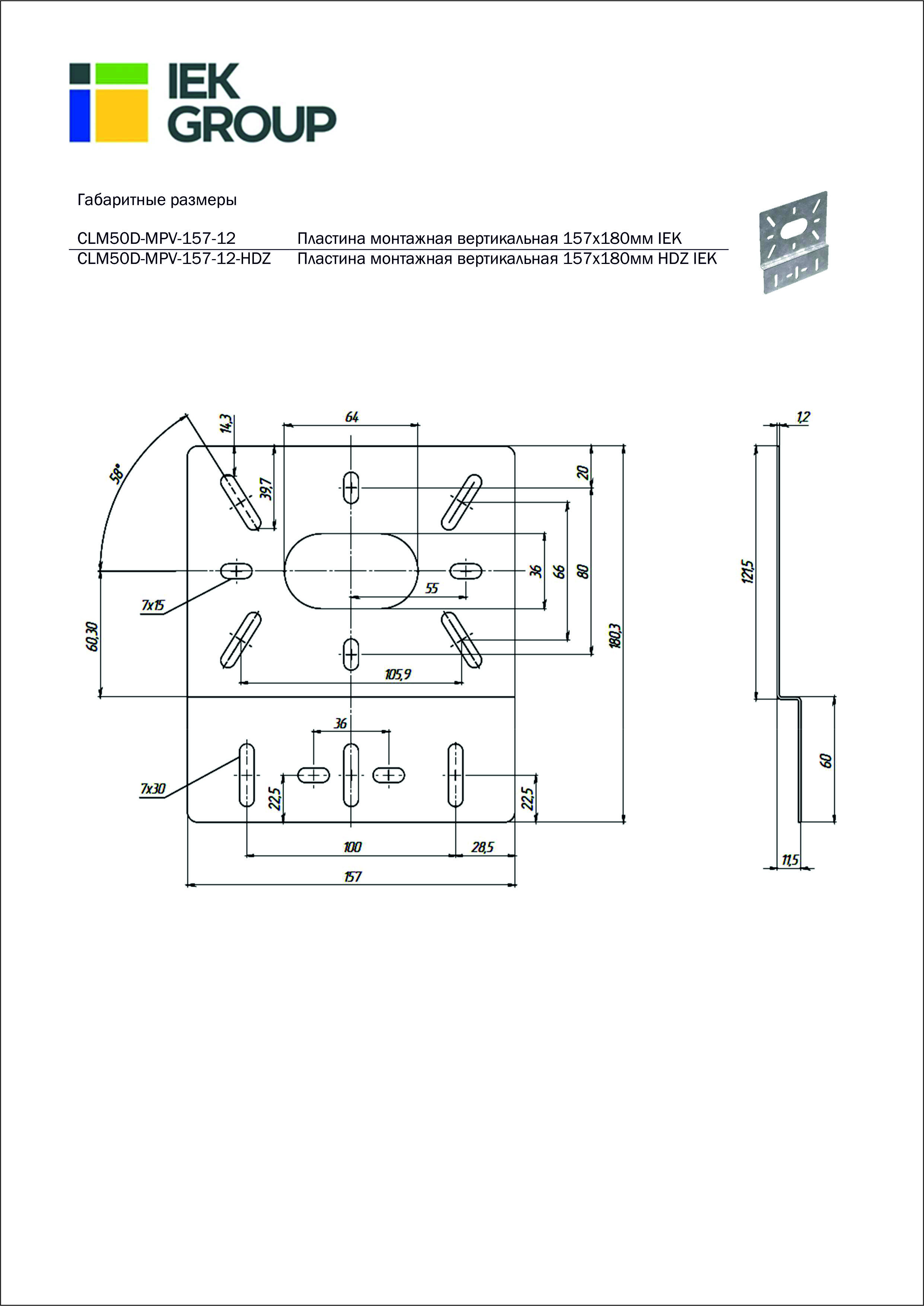 Пластина монтажная вертикальная 157х180мм HDZ | код CLM50D-MPV-157-12-HDZ | IEK