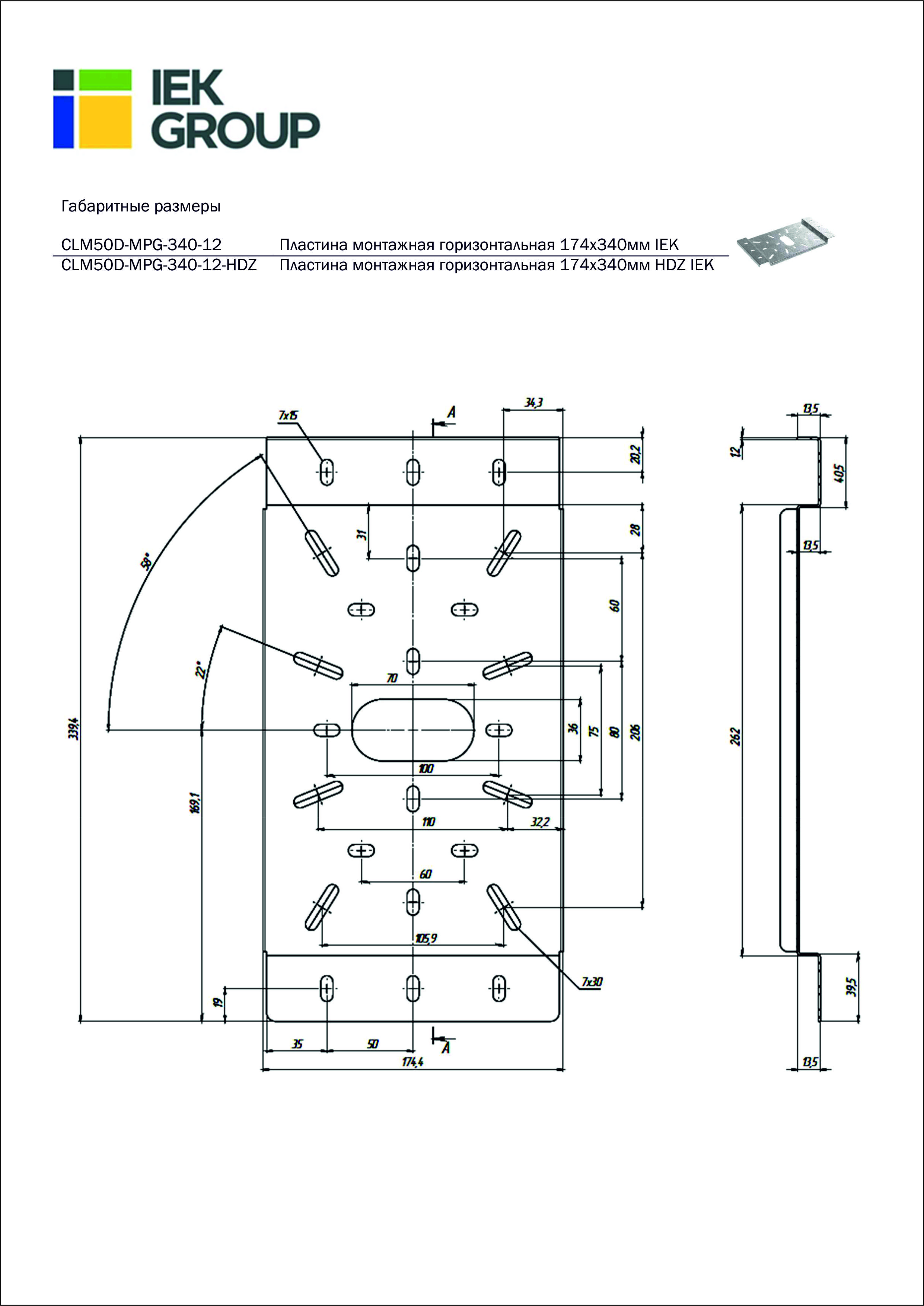 Пластина монтажная горизонтальная 174х340мм HDZ | код CLM50D-MPG-340-12-HDZ | IEK