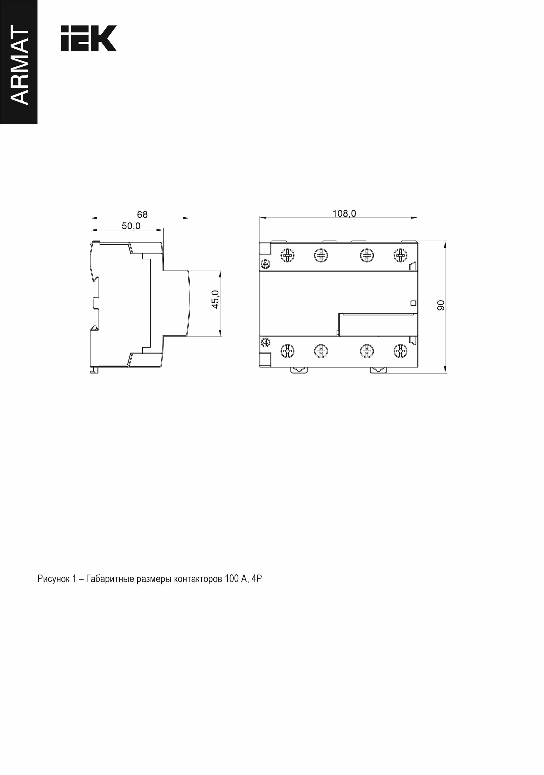 ARMAT Контактор модульный KMR 100А 230В AC 4НЗ IEK | код AR-KMR10-100-04-230 | IEK