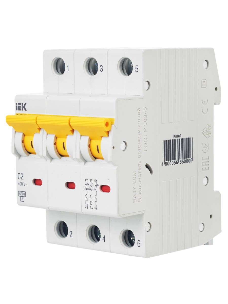 Купить Автоматический выключатель ВА47-60M 3Р 2А 6кА С | код MVA31-3-002-C | IEK | Магазин электрики - электрооборудование от разных производителей.