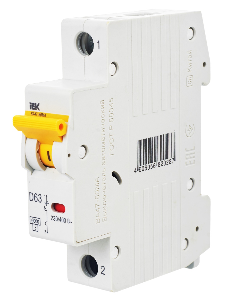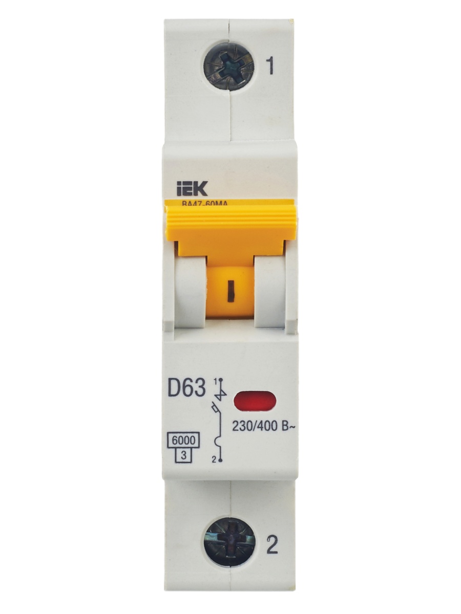 Автоматический выключатель ВА47-60МА без теплового расцепителя 1P 63А 6кА D | код MVA33-1-063-D | IEK