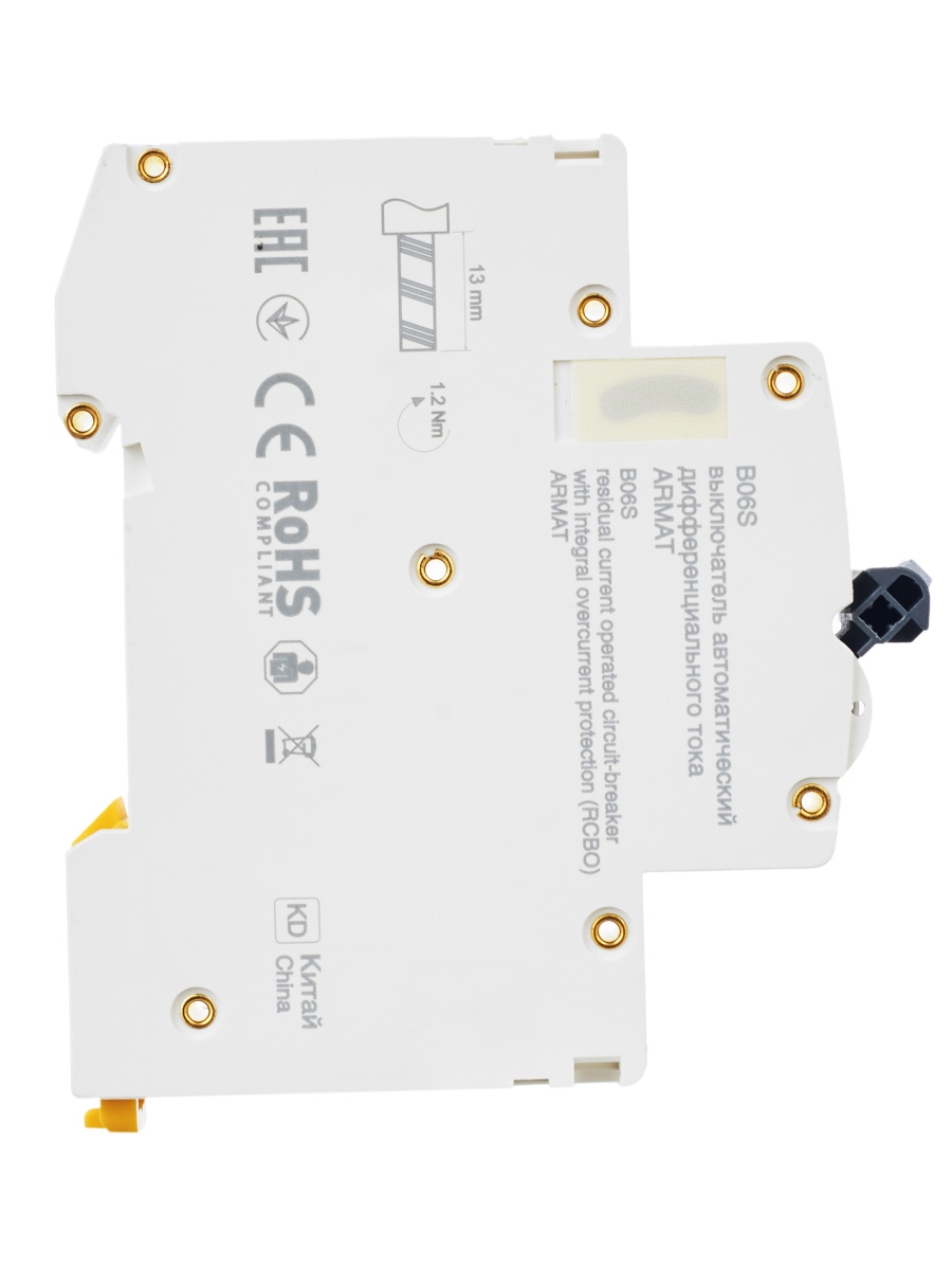 Наименование в прайсе производителя ARMAT Автоматический выключатель дифференциального тока B06S 1P+NP B16 30мА тип A (18мм)