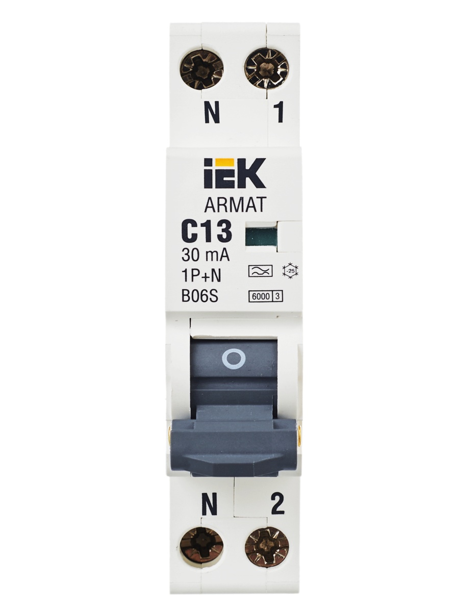 Купить ARMAT Автоматический выключатель дифференциального тока B06S 1P+NP C13 30мА тип A (18мм) | код AR-B06S-1N-C13A030 | IEK | Магазин электрики - электрооборудование от разных производителей.