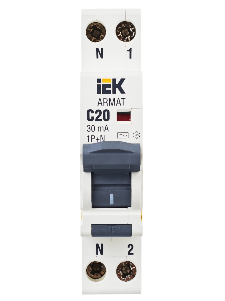 Купить ARMAT Автоматический выключатель дифференциального тока B06S 1P+NP C20 30мА тип AC (18мм) | код AR-B06S-1N-C20C030 | IEK | Магазин электрики - электрооборудование от разных производителей.