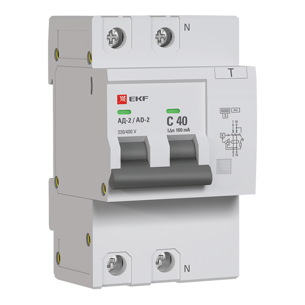 Наименование в прайсе производителя Дифференциальный автомат АД-2 40А/100мА (хар, C, AC, электронный) 6кА EKF PROxima